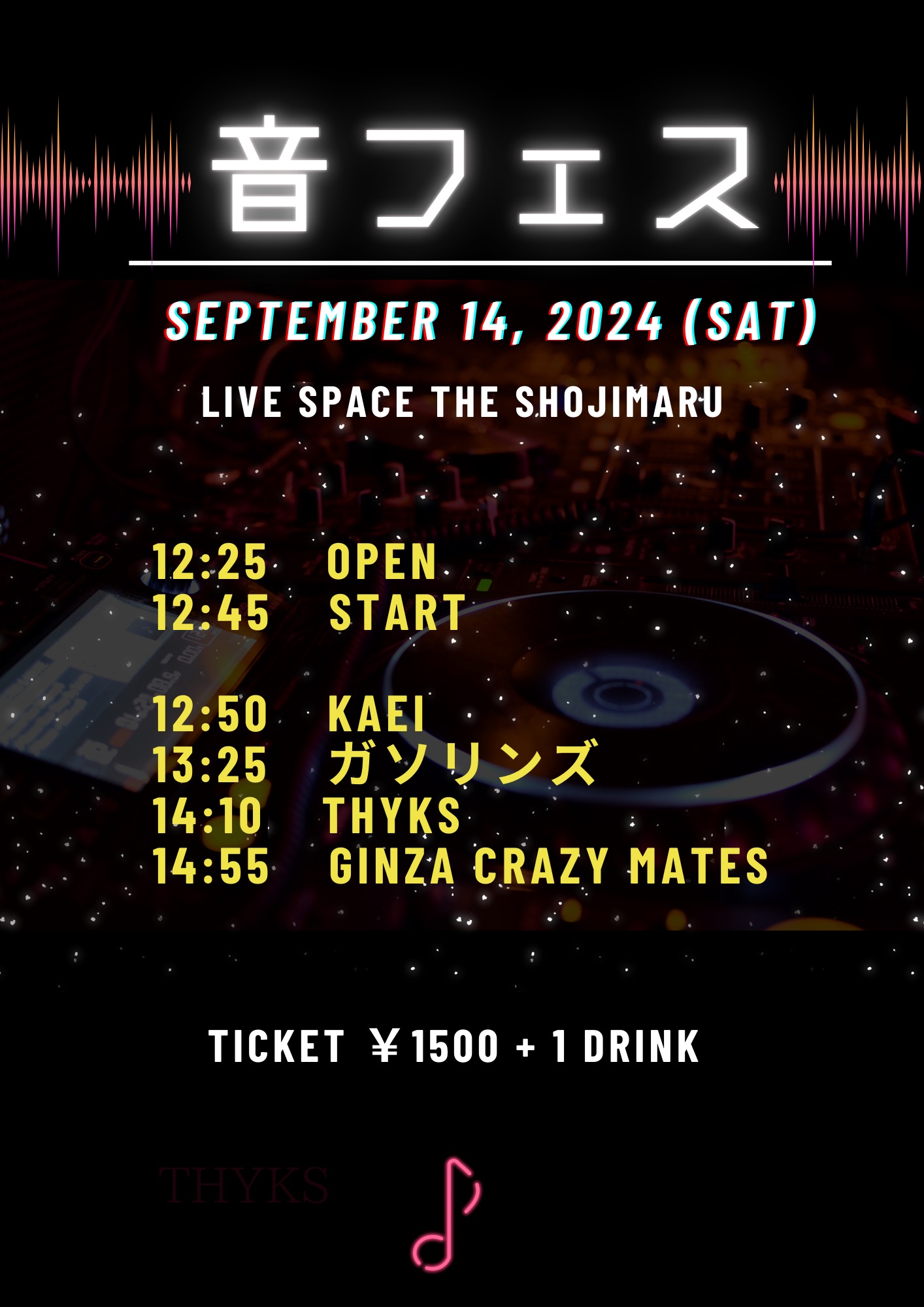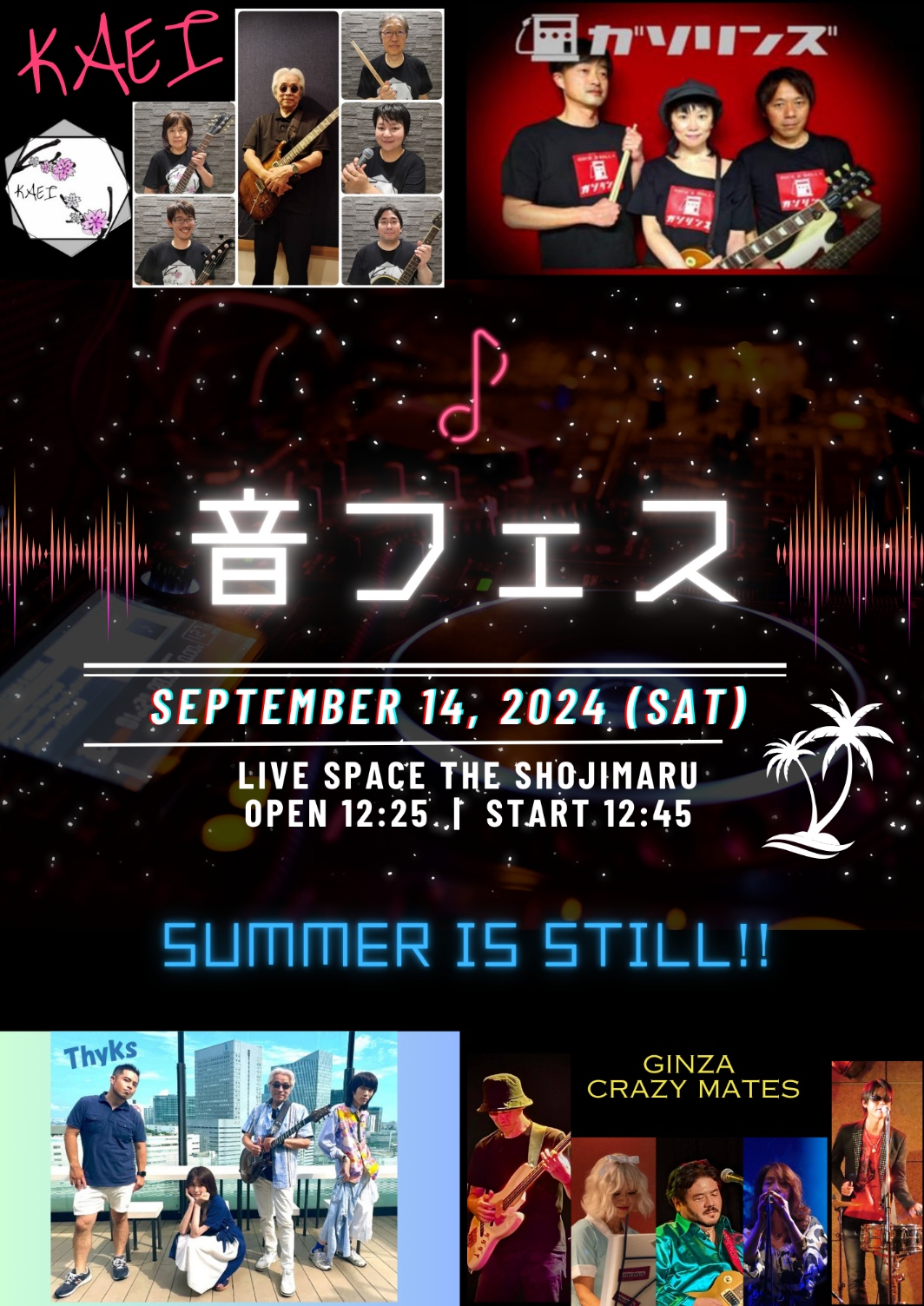 出演者 GINZA CRAZY MATES THYKS ガソリンズ KAEI OPEN 12:25 / START 12:45 1,500円+1drink