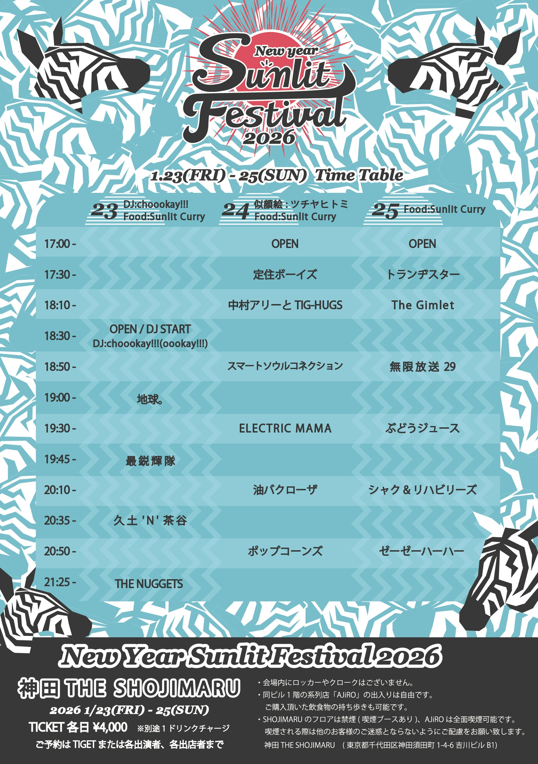 予約 TIGET https://tiget.net/events/439509 または各出演者まで